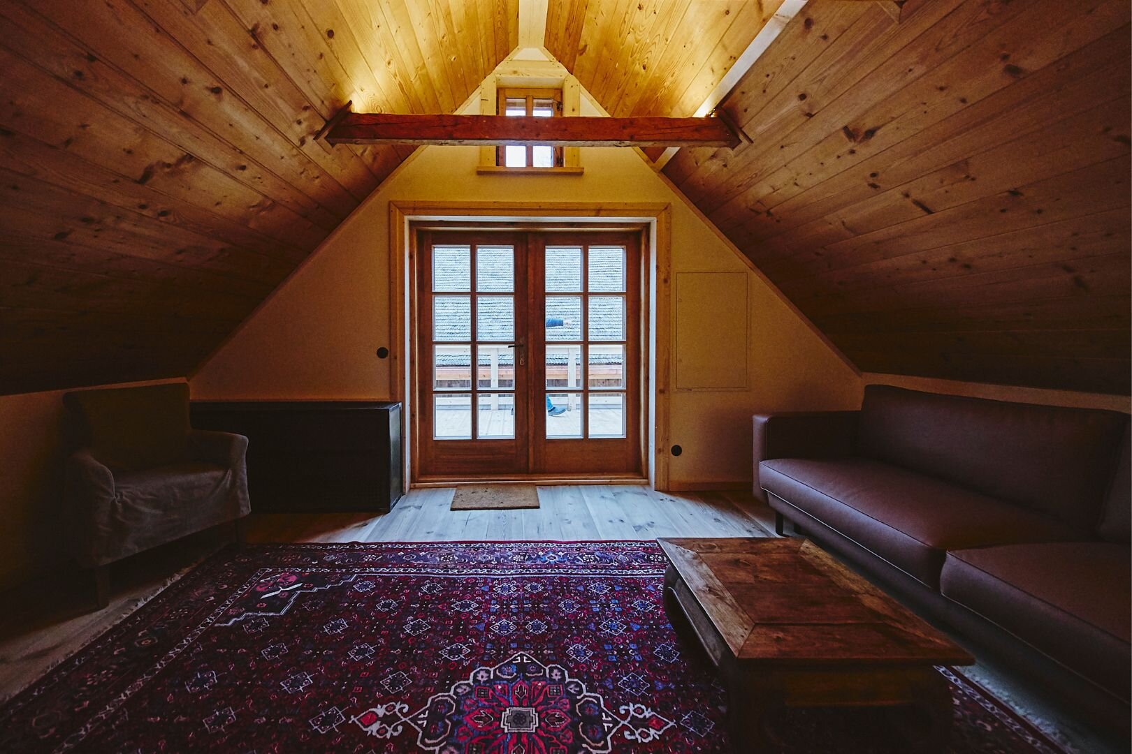 Pokój "Żuraw" to obszerne i przytulne wnętrze, idealne dla maksymalnie trzech osób. Oferuje komfortowe łóżko małżeńskie na antresoli oraz rozkładaną sofę. Luksusowa łazienka jest wyposażona w ręczniki, szlafroki i kosmetyki. Dodatkowo pokój posiada ekspre