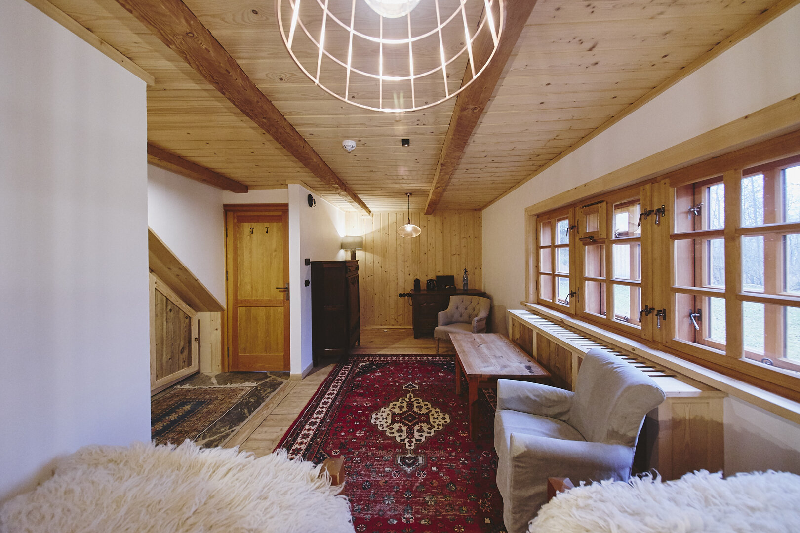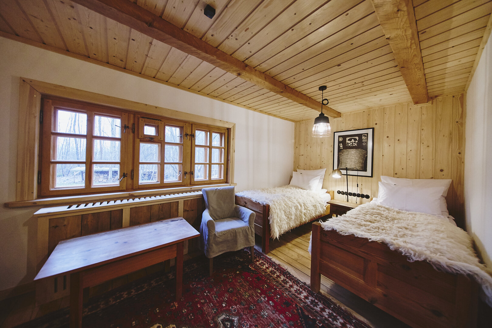 Pokój "Żuraw" to obszerne i przytulne wnętrze, idealne dla maksymalnie trzech osób. Oferuje komfortowe łóżko małżeńskie na antresoli oraz rozkładaną sofę. Luksusowa łazienka jest wyposażona w ręczniki, szlafroki i kosmetyki. Dodatkowo pokój posiada ekspre
